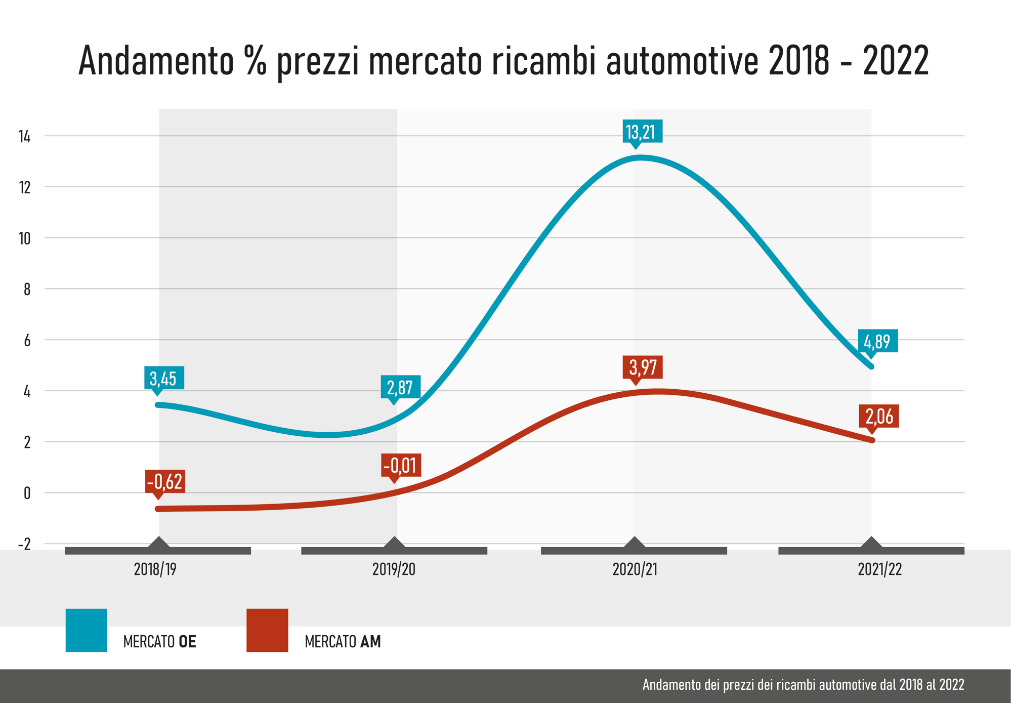 L’articolo analizza come sono cambiati i prezzi dei ricambi automotive nei 4 anni tra il 2018 e il 2022, rapportando i dati con l’andamento dell’inflazione.
